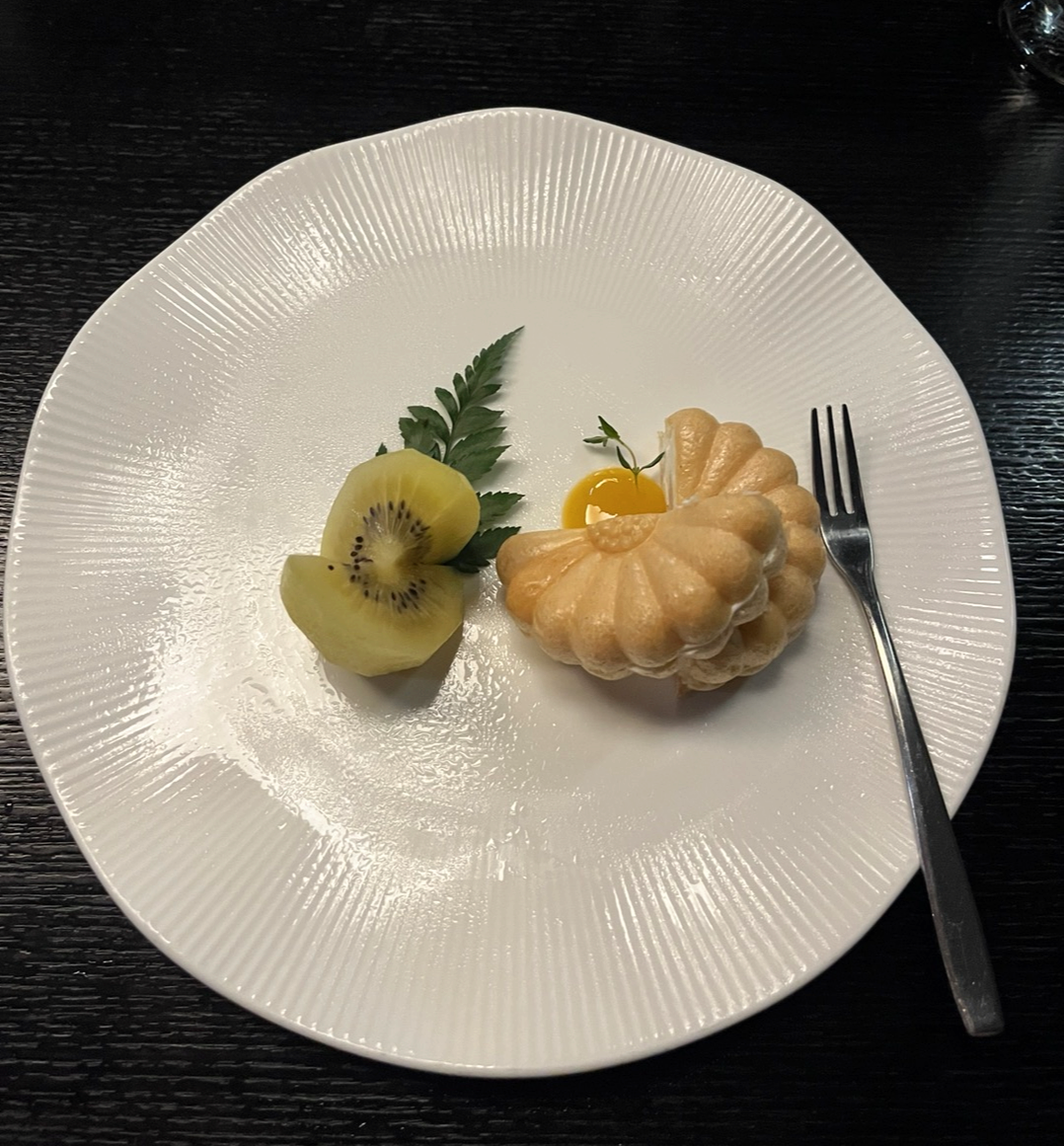 마지막 디저트는 모나카에 망고 소스가 곁들여져 나왔습니다.